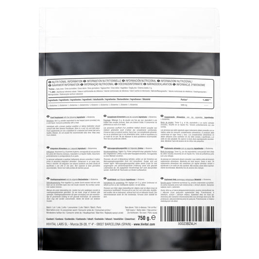 L-Glutamina 5000 mg | 750 g Polvo Vegano | Recuperación Muscular, Intestino y Energía