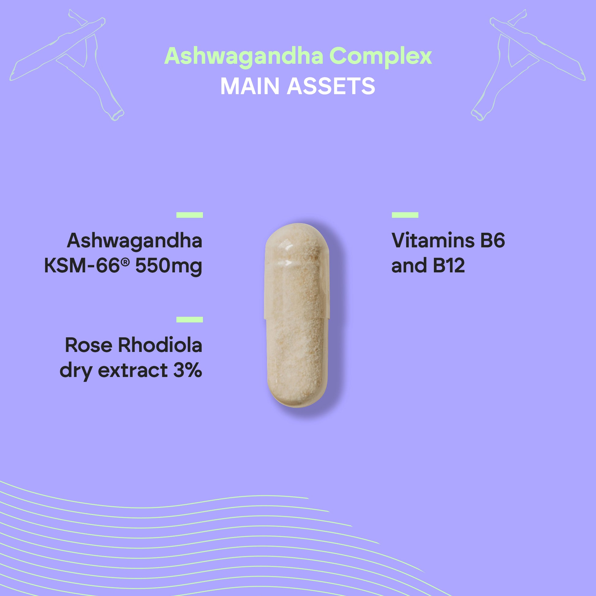 Este complemento combina Ashwagandha KSM-66®, un extracto de raíz de alta calidad, con vitaminas B6 y B12, que contribuyen al buen funcionamiento del sistema nervioso, al metabolismo energético y a la regulación hormonal.