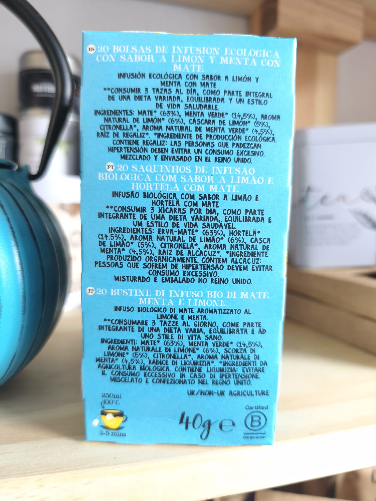 El mate aporta energía natural y ayuda a mantener el peso corporal, mientras que la menta y el limón aportan frescor y ligereza, haciendo que cada taza sea un momento revitalizante.