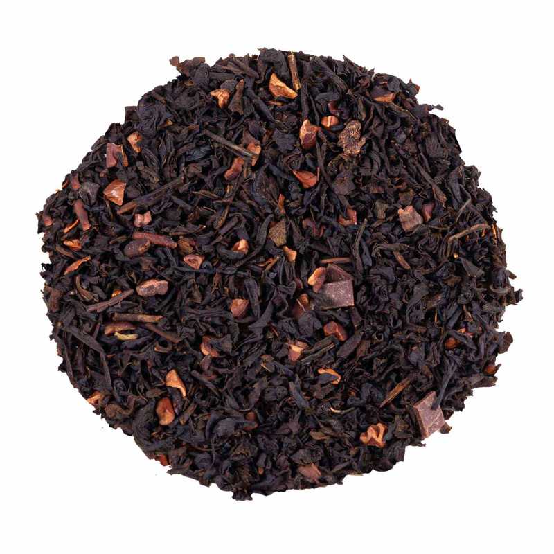 Ingredientes: Té negro Ceylon, -Sudíndico, -China, trozos de cacao, Chocolate (azúcar, pasta de cacao, manteca de cacao, emulgente: lecitina (E322)) , aroma natural.