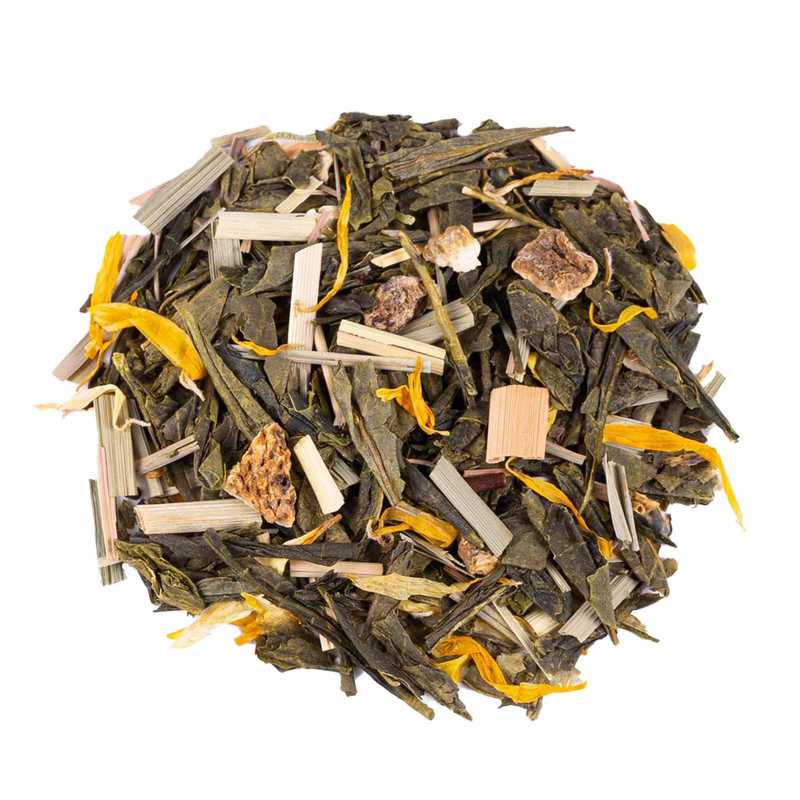 Ingredientes: Té verde China Sencha, citronela, cáscara de limón, aroma natural, menta, caléndula. Mezcla premium con ingredientes de cultivo sostenible y aromas naturales.