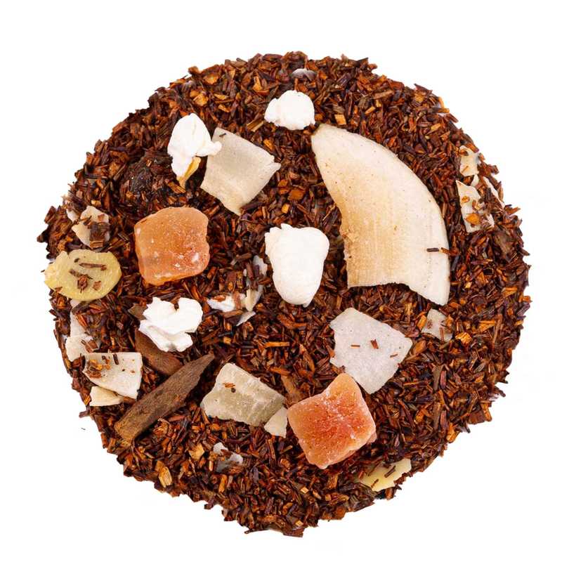 El Rooibos es el componente base de esta infusión, conocido por sus propiedades antioxidantes, antiinflamatorias y calmantes. Sin cafeína, el Rooibos es perfecto para disfrutar de una bebida relajante, mientras refuerzas tu sistema inmunológico y combate el estrés. Este ingrediente aporta una suavidad natural que complementa perfectamente los sabores más intensos de la mezcla.