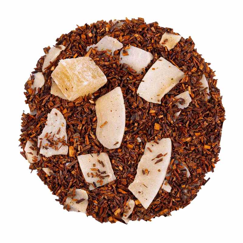 El coco le da un toque cremoso y tropical a esta infusión, además de ser una fuente rica en ácidos grasos saludables, antioxidantes y fibra. Ayuda a mejorar la digestión, promueve la salud cardiovascular y mantiene la piel hidratada y radiante. Su sabor único y su textura suave hacen que cada sorbo sea un placer tropical.